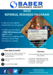 - Tell your friends, family, coworkers, and anyone else you know about the Saber Insurance Agency.